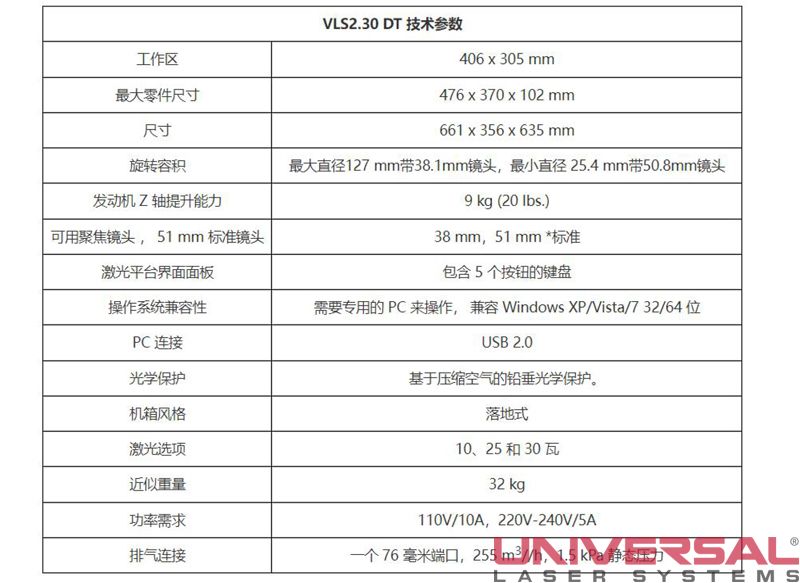VLS2.30 DT 标配了 Laser Interface+,还可采用其他许多选项来提高您的激光加工能力。 所有 Universal 激光平台都使用可互换组件,支持您调整系统来满足具体需求。